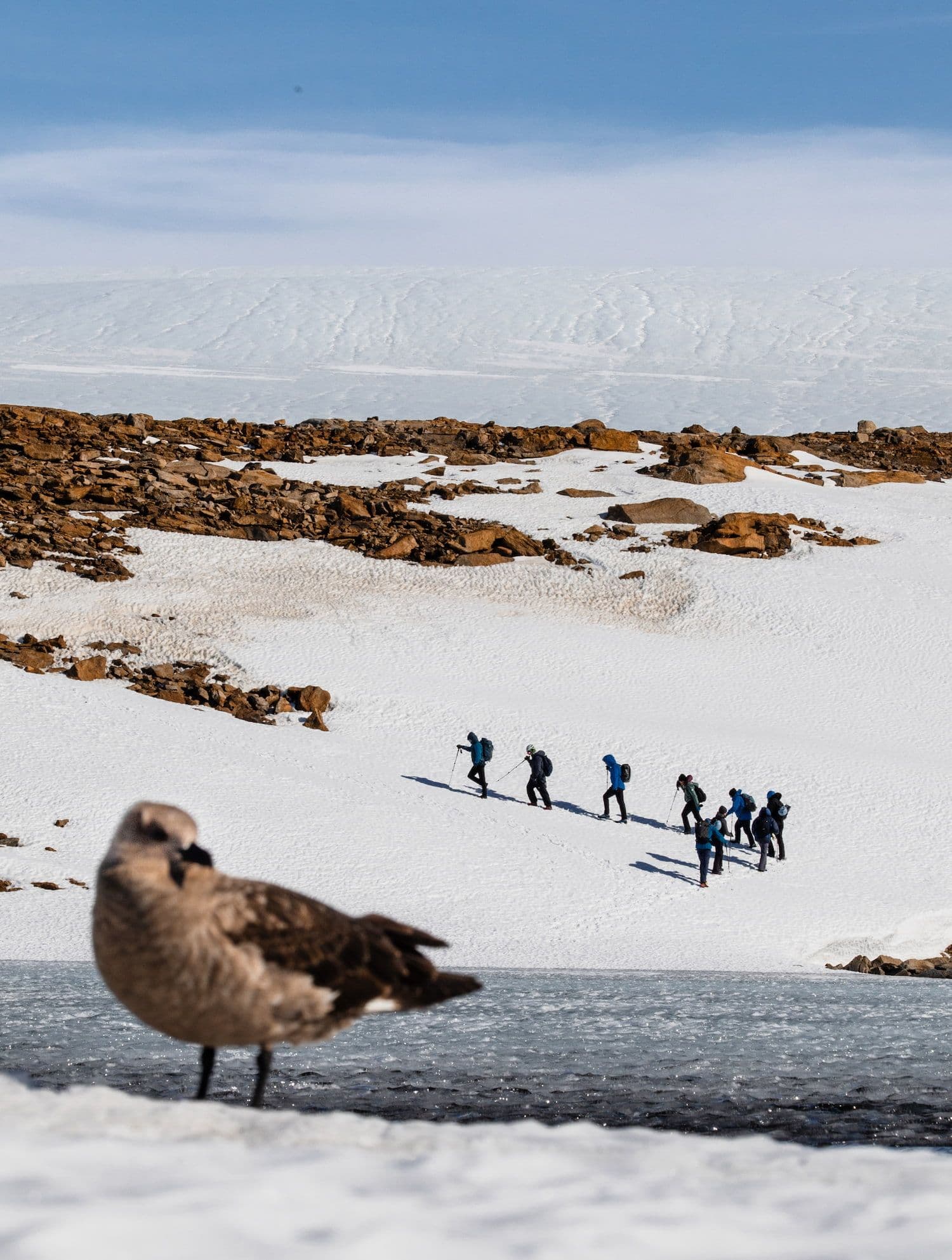 Despite Antarctica being the driest desert on Earth, the oasis supports an unexpectedly rich suite of specialised life. Antarctic skuas patrol the rocky terrain; snow petrels and Antarctic petrels nest on cliffs and ridges; and Wilson’s storm petrels, among the world’s smallest seabirds, shelter in crevices and beneath boulders. Even Adélie penguins occasionally wander inland to rest or escape coastal storms.