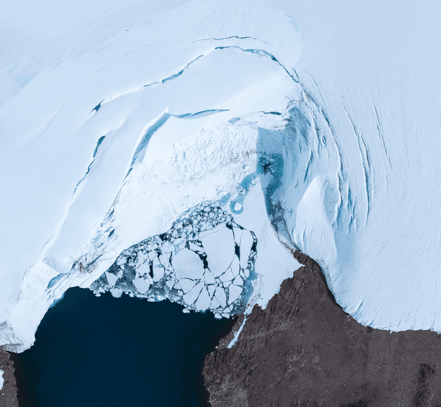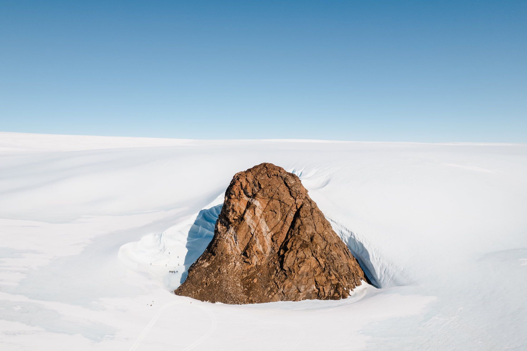 The darker bedrock absorbs more heat than the surrounding ice, allowing the oasis to form its own subtle microclimate — slightly warmer, calmer and more stable than the polar plateau beyond. Set within this distinctive environment are more than a hundred freshwater lakes, melt streams and small glaciers, a rare confluence of ice, rock and water found almost nowhere else on the continent. Among them is Lake Untersee on the eastern fringe of the oasis, one of Antarctica’s deepest and clearest lakes. Its ancient microbial mats are of particular scientific interest, offering a glimpse into ecosystems that may resemble early Earth life. Many of the oasis’s lakes remain ice-covered throughout the year, while summer melt channels carve luminous blue pathways through granite outcrops. Small cirque glaciers feed into the plateau, creating a continual dialogue between ancient bedrock, seasonal meltwater and shifting ice. This unusual hydrology has made the Schirmacher Oasis a focal point for polar limnologists and climate researchers.